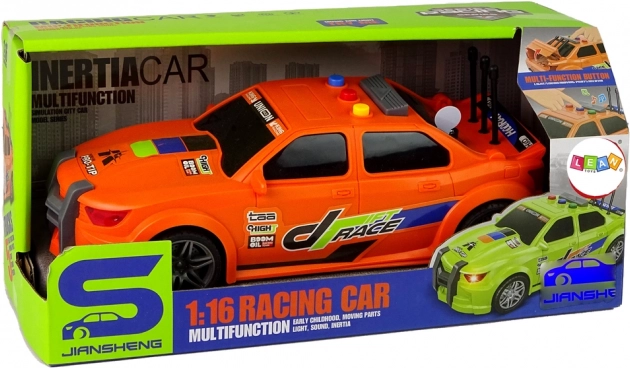 Toto štýlové pretekárske auto v mierke 1:16 prináša deťom radosť z jazdy aj atraktívne efekty. Po stlačení tlačidiel sa ozvú zvuky štartu motora a melódie, doplnené svetlami, ktoré umocnia atmosféru pretekov. Vďaka zotrvačnému pohonu stačí autíčko postrčiť a plynule sa rozbehne.