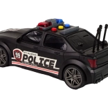Čierne športové prevedenie s nápismi POLICE, modro-červenými majákmi a anténami dodáva hračke realistický vzhľad.