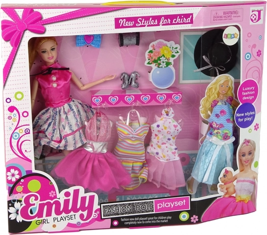 Bábika Emily poteší každú malú stylistku. Má elegantný outfit s ružovým topom a kvetovanou rozšírenou sukňou, ktoré dopĺňajú čierne lodičky. Vďaka pohyblivým kĺbom ju ľahko nastavíte do rôznych póz. Sada zahŕňa viac šiat a doplnkov, takže každý deň môže vyzerať inak.