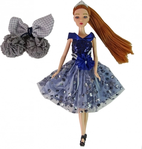 Emily zaujme lesklými modrými šatami s trblietkami a elegantnou tiarou – ideálne pre módne prehliadky aj rozprávkové príbehy.