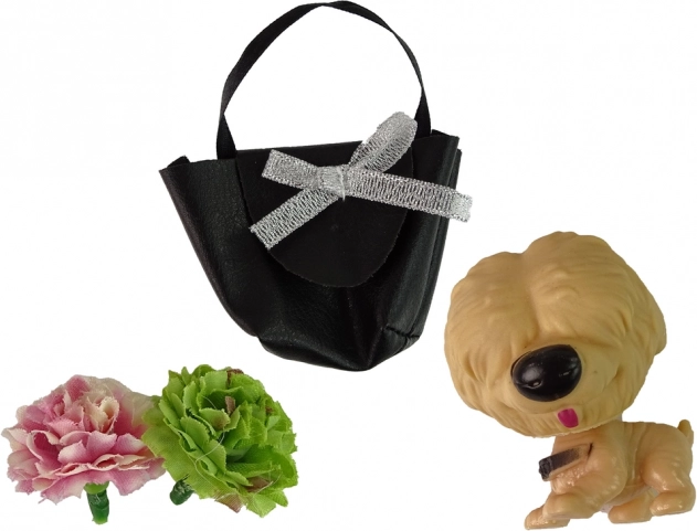 - Bábika Emily, psík, kabelka, 2× kvet