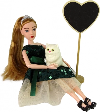 Súčasťou sady je biele mačiatko s píšťalkou pre veselé zvukové efekty a dekoratívne drevené srdce na stojane, ideálne ako kulisa k hernému „mólu“. Set je skvelým darčekom pre malých milovníkov bábik a módy.