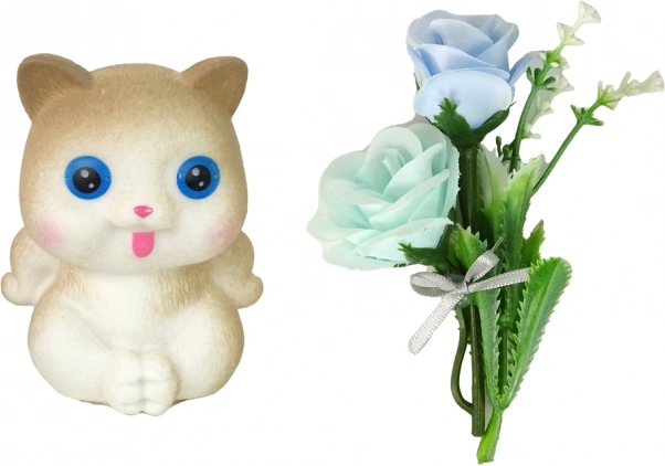Set s mačiatkom a kvetmi