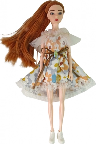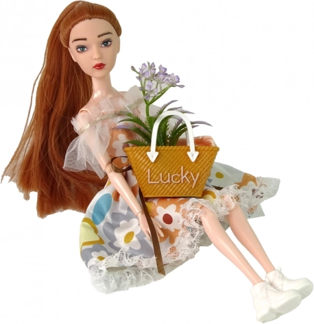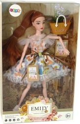 Objavte čaro jesene s bábikou EMILY – elegantnou bábikou s dlhými vlasmi a zelenými očami, oblečenou do bielych šiat s jemným kvetinovým vzorom, čipkou a mašľou. Ľahučké tenisky dodávajú ležérny vzhľad a doplnková hnedá kabelka podčiarkuje štýl.