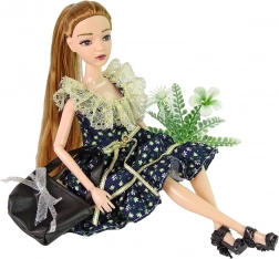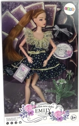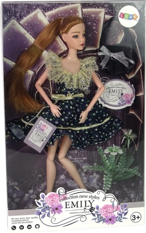 Objavte svet módy s bábikou EMILY – ideálnou voľbou pre kreatívne hry, domáce módne prehliadky aj každodenné príbehy. Bábika je oblečená do krásnych tmavomodrých šiat s bielymi kvietkami a ladiacich čiernych lodičiek na podpätku. Dlhé vlasy nabádajú k česaniu a tvorbe účesov, zatiaľ čo pohyblivé končatiny umožňujú prirodzené pózy ako na skutočnom móle.