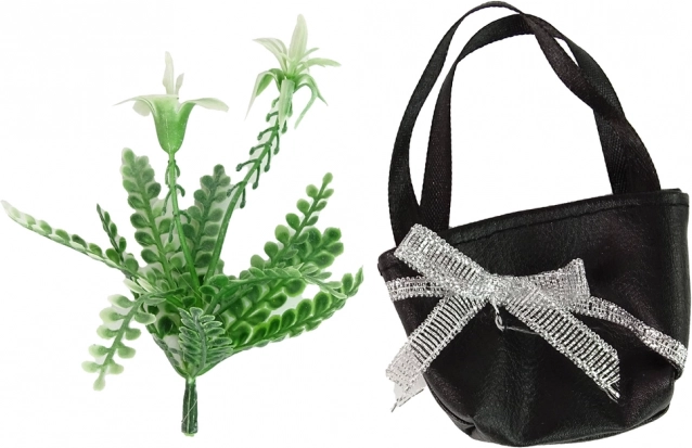 Set zahŕňa štýlovú čiernu kabelku a kvetinové doplnky, ktoré dotvárajú outfit. Kvalitné materiály a starostlivé prevedenie zaručujú bezpečnú a príjemnú hru. Výrobok spĺňa normu EN71 a má označenie CE, je teda vhodný pre deti od 3 rokov.