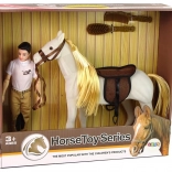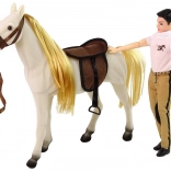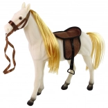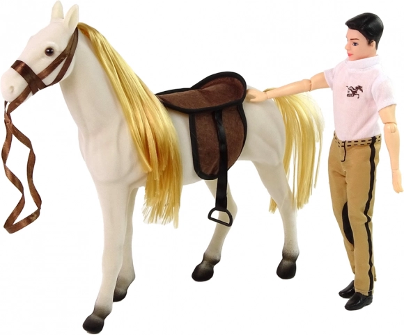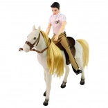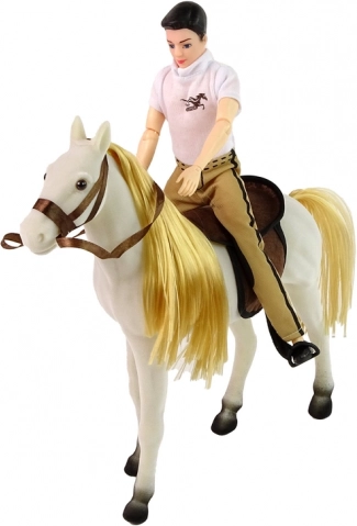 Objavte svet dobrodružných hier s touto jazdeckou bábikou a bielym koňom! Perfektná sada pre každého malého nadšenca koní, ktorá rozširuje možnosti hrania a rozvíjania fantázie. Hračka zahŕňa bábiku s ohybnými končatinami pre rôzne herné polohy a štýlový outfit, dokonale kopírujúci jazdeckú módu. Biely kôň vyrobený z príjemného materiálu má realistický vzhľad, vrátane sedla a uzdy.