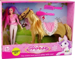 Vstúpte do sveta fantázie s bábikou jazdkyňou a jej krásnym hnedým koňom. Bábika má ohybné ruky a nohy, čo umožňuje postaviť ju do rôznych polôh, či už stojí alebo sedí na koni. Jej štýlový odev je typicky jazdecký, čo dodáva celej hre autentickosť.