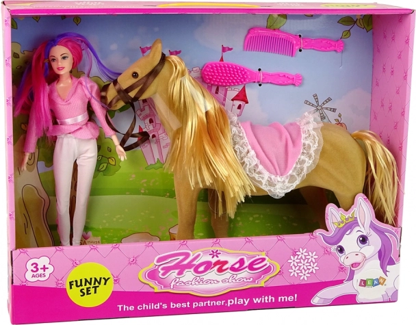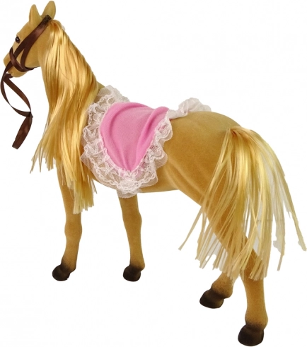 Kôň je vyrobený z hebkého a príjemného materiálu a verne napodobňuje skutočný vzhľad zvieraťa. Balíček obsahuje ružovú kefu a hrebeň na úpravu dlhej hrivy koňa, čo deťom umožňuje rozvíjať starostlivosť a zodpovednosť.
