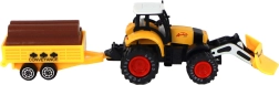 Traktor je vybavený frikčným pohonom, ktorý umožňuje jednoduché ovládanie pohybu traktora. Deti si môžu hrať na farmu a prepravovať rôzne materiály na prívesu, ktorý je vybavený imitáciami kmeňov stromov.