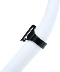 Nastaviteľný klip na pripevnenie šnorchla k maske a horný kryt obmedzujúci vnikanie vody pre pokojné šnorchlovanie.