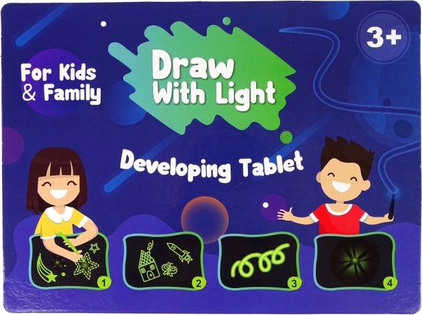 Fluorescenčná svetelná tabuľa na kreslenie ponúka nekonečné možnosti kreatívnej zábavy. Stačí maľovať na tabuľu, vypnúť svetlá a pomocou špeciálneho pera vidieť svoje dielo v úplne novom svetle. Vytvárajte magické a farebné kresby, ktoré osvetlia temnotu a ohromia každého.