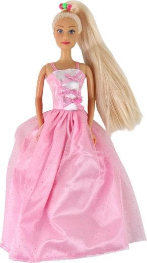 Ružové plesové šaty s decentným trblietaním a dlhé blond vlasy robia z Lucy skutočnú hviezdu každej hry. Ideálne na česanie, zapletanie a styling.