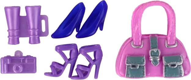 V sete je taktiež niekoľko módnych kúskov, vrátane dvoch ďalších šiat a nohavíc s blúzkou, aby bábika mohla meniť štýl podľa nálady. Dvoje páry topánok, kabelka, malý fotoaparát a ďalekohľad dopĺňajú praktické príslušenstvo pre rôzne príležitosti a podnecujú detskú fantáziu k plánovaniu výletov a fotografických sedení.