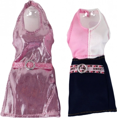 Dvoje ďalšie šaty, jedny s trblietavým povrchom a druhé s nápisom 'SWEET', ponúkajú nekonečné možnosti pre módne experimenty.