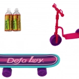 Predstavujeme sadu bábik, ktorá prináša kreatívne a interaktívne zážitky pre deti. Táto pestrá kolekcia obsahuje dve bábiky, jednu väčšiu s fialovou prilbou a menšiu, detskú bábiku s ružovou prilbou. Skvelým doplnkom k týmto bábikám tvorí ružová kolobežka a tyrkysový skateboard. Deti si môžu užívať hodiny zábavy vytváraním unikátnych príbehov a scén.