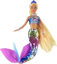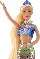 Naša bábika je skutočným príbehom o kráse a mágii, ktorá poteší ako malých, tak aj veľkých milovníkov rozprávkových príbehov. Jej šupinatý chvost je výnimočný vďaka obojstrannej štruktúre a efektným farebným flitrom. Pri pritiahnutí rukou po flitroch zmení farbu na striebornú, čo pripomína krásne šupiny pravej morskej panny.