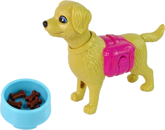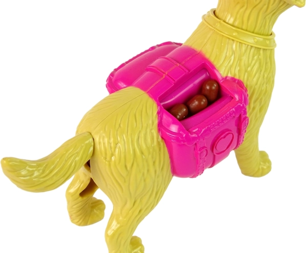 Žltý psík má pohyblivý chvost, uši a papuľu. Vďaka ružovému zásobníku a miske s granulkami môžeš psíka znova a znova kŕmiť a rozvíjať fantáziu.