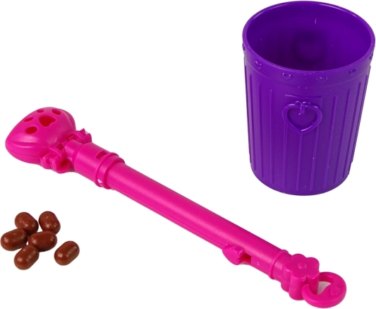 - Bábika, psík, ružová vôdzka, kôš na odpadky, miska s krmivom, lopatka