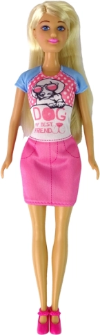 S touto sadou sa deti ponoria do sveta fantázie a starostlivosti o domáceho miláčika. Interaktívneho psíka možno opakovane kŕmiť granulkami z misky a vďaka pohyblivému chvostu, ušiam a papuli pôsobí hra prirodzene a zábavne. Bábika s dlhými blond vlasmi má kĺbové ruky aj nohy, takže ľahko zaujíma realistické pózy pri kŕmení, venčení aj mojkaní.