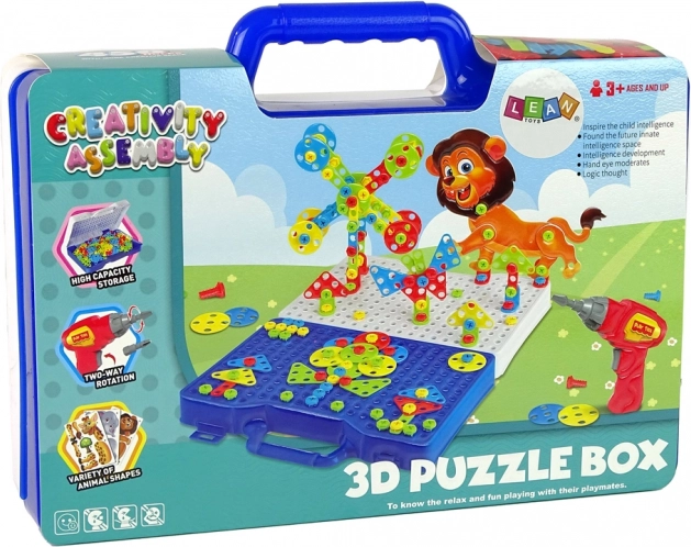 Sada 3D puzzle v štýlovom kufríku je jedinečná a inovatívna hračka, ktorá podnieti kreativitu a predstavivosť vášho dieťaťa. Zložka so 450 otvormi slúži ako doska na skladanie puzzle a jej praktický dizajn umožňuje jednoduché prenášanie.