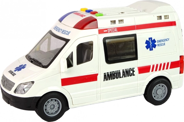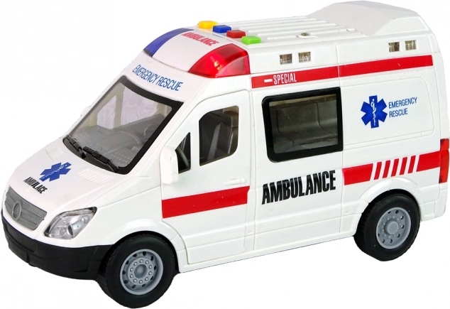 Sanitka je vyrobená z odolného plastu, má gumové pneumatiky pre tichý a istý pohyb po rôznych povrchoch a realistické prvky ako nápisy, výstražné majáky a okná. Podporuje kreativitu, rolové hry a rozvoj jemnej motoriky.