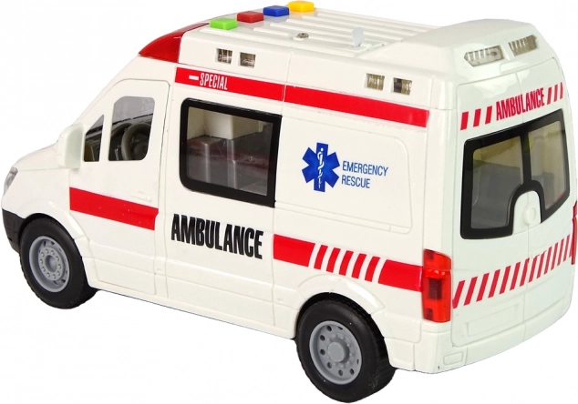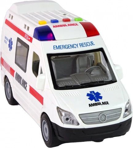 Táto detailne spracovaná hračka sanitky ponúka interaktívnu zábavu: 4 farebné tlačidlá spúšťajú rôzne zvukové efekty a svetlá, otváracie dvere umožnia nahliadnuť do interiéru a zotrvačník zaistí svižnú jazdu bez batérií pre pohon kolies. Vďaka rozmerom 22 × 8 × 12 cm skvele padne do detských rúk.