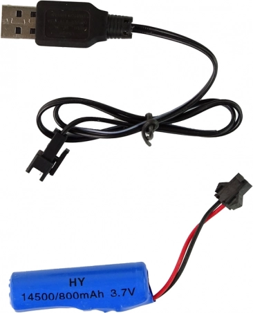 Súčasťou je nabíjateľný akumulátor 14500/800 mAh 3,7 V a USB nabíjačka, takže zábava môže začať hneď po vybalení. Ovládač (batérie nie sú súčasťou) perfektne padne do ruky a umožní presné manévrovanie. Model je vhodný pre deti od 6 rokov a spĺňa normy CE a EN71.