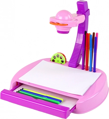 Tento ružový projektor, špeciálne navrhnutý pre deti, umožňuje kopírovanie obrázkov z priložených šablón a ich projekciu napríklad na stenu. Obraz môže byť zaostrený pomocou nastaviteľného objektívu. Projektor poskytuje zábavu a zlepšuje manuálne zručnosti tým, že povzbudzuje presnosť a precíznosť potrebnú pri kreslení a písaní.
