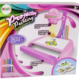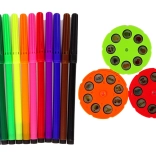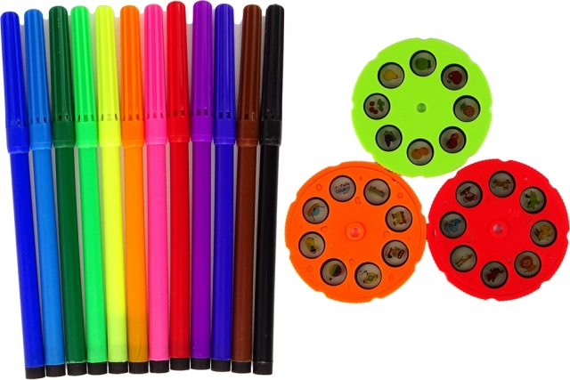Vďaka úložnej zásuvke je ľahké udržať kreatívne miesto v poriadku a mať všetky potrebné nástroje po ruke. Produkt je vybavený 12 farebnými fixkami a 3 diskami s rôznymi obrázkovými šablónami.