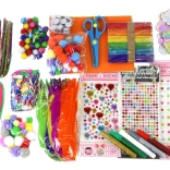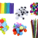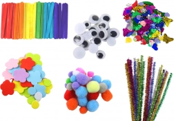 Táto sada obsahuje pestrý výber materiálov vrátane farebných drôtikov, trblietavých lepidiel a ozdobných nálepok pre nekonečné tvorivé projekty.