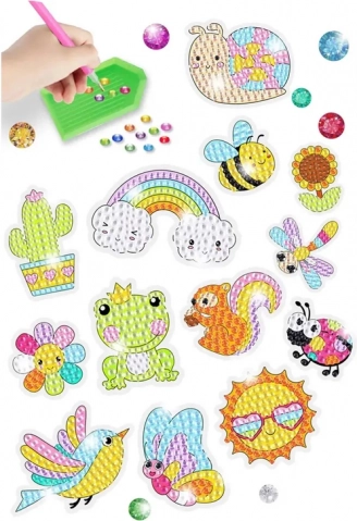 Nálepky zobrazujú zvieratká ako veveričku, žabu, hmyz, kvety a farebnú dúhu. Ideálne pre deti od 5 rokov, perfektný darček!