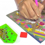 Sada obsahuje rôzne druhy samolepiek a farebných kryštálikov, ktoré môžu vašej kreativite dodať novú dimenziu.