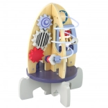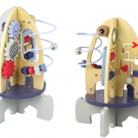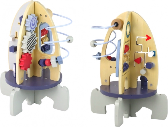 Toto multifunkčné aktívne centrum v tvare rakety premení hru na zábavné učenie. Deti budú posúvať farebné korálky v labyrinte, otáčať ozubenými kolieskami a skúšať prvé počítanie – to všetko podporuje koordináciu oko–ruka, trpezlivosť a sústredenie. Vesmírny motív navyše prebúdza predstavivosť a zvedavosť.