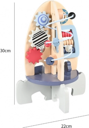 Doprajte deťom objavovanie vesmíru aj zručností s touto drevenou vzdelávacou raketou. Ponúka korálkový labyrint, ozubené kolieska a počítanie s korálkami na rozvoj jemnej motoriky, logického myslenia a učenia farieb a tvarov. Vyrobená z kvalitného dreva, s bezpečnými farbami a stabilnou konštrukciou, ideálna pre deti od 3 rokov.