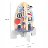Raketa je vyrobená z odolného dreva a všetky hrany sú starostlivo zabrúsené. Spĺňa normy CE a EN 71, takže si môžete byť istí bezpečnou hrou. Vďaka kompaktným rozmerom sa skvelo hodí do detskej izby aj herného kútika.