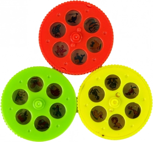 Zariadenie je skladacie a ľahké, takže sa zmestí do ruksaku. Polohovateľná hlava umožní nastaviť uhol a zaostrenie obrazu. Stačí vložiť kotúč s motívmi, zapnúť tlačidlo na zadnej strane a začať tvoriť. Fixky do ruky a hurá do kreatívnej zábavy!