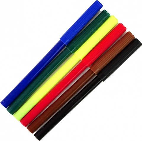 V balení nájdete 3 kotúče s obrázkami a 6 farebných fixiek – inšpirácia a farby vždy po ruke, bez nutnosti dokupovať príslušenstvo.