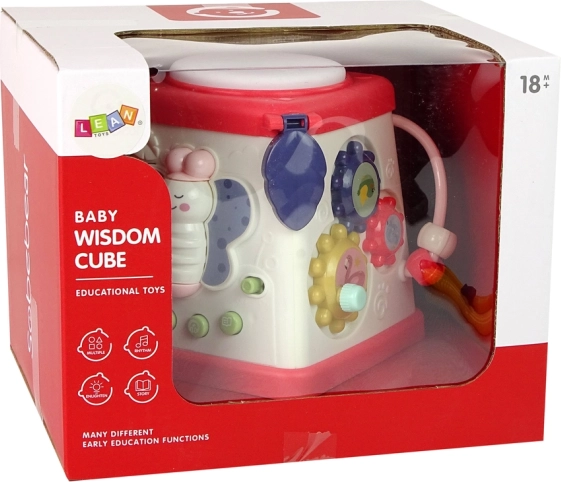 Táto farebná interaktívna kocka spája niekoľko aktivít do jedného múdreho celku. Každá strana prináša inú zručnosť: od posilňovania jemnej motoriky cez rozvoj sluchu a zraku až po prvú slovnú zásobu v angličtine. Vďaka pestrým farbám a príjemným zvukom si deti hru okamžite zamilujú.