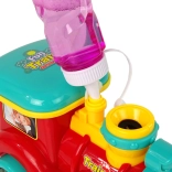 - červená lokomotíva, roztok na bubliny