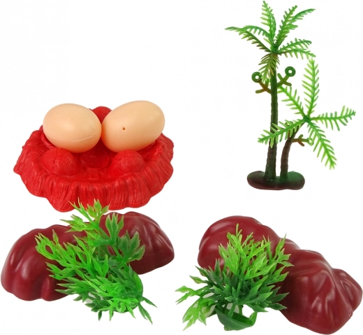 Ďalej tu nájdete troch malých dinosaurov, ktorí dodávajú hre dynamiku a pestrosť. Doplnky ako dva kamene, dva kríčky a dve vajcia poskytujú autentické pozadie pre hry a základňa s nimi dodáva scenáru na opravdivosti. Jeden strom dopĺňa set a podporuje vytváranie príbehov v prírodnom prostredí.