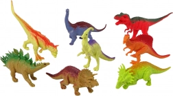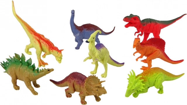Sada obsahuje osem veľkých a štyri malé dinosauří figurky, každá z nich zobrazuje iný druh a má svoju jedinečnú farbu.