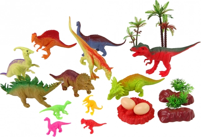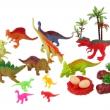 Sada dinosaurov s doplnkami predstavuje vzrušujúcu cestu do sveta pravekých tvorov, ktorá nadchne každé dieťa. Obsahuje osem veľkých a štyri malé dinosauří figurky, každý reprezentuje iný druh a každý má svoju jedinečnú farbu, čo umožňuje deťom spoznávať rozdiely medzi nimi. Vďaka týmto rozmanitým prvkom môžu deti objavovať a učiť sa o dávnom živote zábavnou formou.