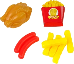 Tento set obsahuje kúsky pizze, papriku, hamburgery a piroh. Farebné a zábavné, tieto hračky podporujú hru a simuláciu prípravy jedla.