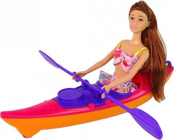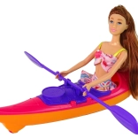 Objavte potešenie z dobrodružstiev s touto úžasnou sadou bábky a kajaku. Kolekcia zahrňuje bábku vo farebnom plážovom oblečení, ktorá je pripravená na vodné výpravy. Dlhé hnedé vlasy bábky sa krásne lesknú na slnku a ružové páskové sandále dodávajú poriadnu dávku štýlu. Žiarivo ružový kajak ponúka realistické herné prvky s pohyblivým pádlem a žltou záchrannou vestu pre bezpečné hry na vode.