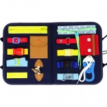Doska obsahuje množstvo prvkov v rôznych tvaroch a textúrach, ktoré pomáhajú zlepšiť hmatové vnímanie. Obsahuje rôzne druhy zapínania, ako sú gombíky, spony a šnurovanie, čo stimuluje detskú kreativitu a učí ich samostatnému zvládaniu úloh každodenného života.