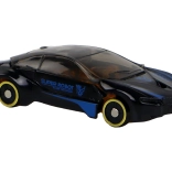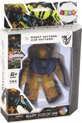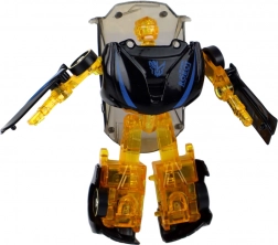V podobe auta sa robot stáva futuristickým vozidlom so žltými ráfikmi a modrými detailmi, ktoré priťahujú pozornosť.