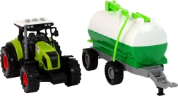 Hračka je prevažne zelenej farby, ktorú si s týmto typom vozidla spájame. Súčasťou sady je traktor a cisterna, čo spestruje detskú hru. Samotný traktor má možnosť jazdy a vydávania charakteristických zvukov. Zadné kolesá vďaka ručnému pohonu umožňujú vozidlu pohyb vpred alebo vzad, podľa preferencie. Pokiaľ ide o zvukové prejavy, traktor má 3 tlačidlá na streche. Tieto tlačidlá vydávajú zvuky, ako je cúvanie, trúbenie a štartovanie. Aby ste zvuky počuli, je potrebné vytiahnuť bielu plastovú poistku. Traktor má v sade príves s cisternou, ktorý by mal byť pripojený k zadnej časti vozidla podľa toho, či sa s ním dieťa chce hrať. Príves má zelené časti, ktoré možno otvoriť alebo zdvihnúť nahor.