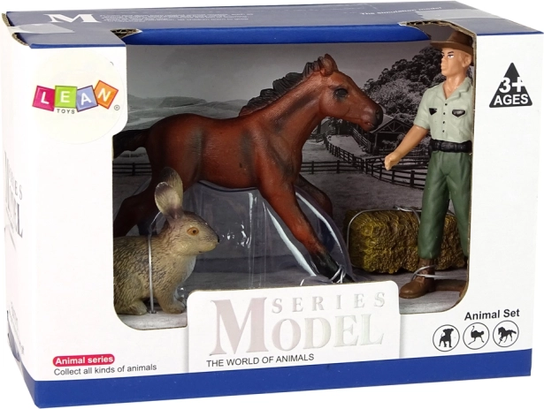 Precízne spracovaná sada figúrok z farmy s koňom, zajacom a farmárom poteší každého malého milovníka zvierat. Realistické detaily, odolný plast a veľkosť do detskej ruky podporujú fantáziu a jemnú motoriku. Vek 3+, certifikácia CE a EN 71.