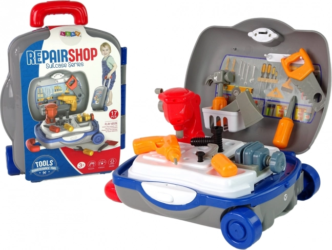 Pojazdný kufrík s náradím premení každé dieťa na malého opravára. Sada obsahuje bezpečné plastové náradie a pracovnú plochu na hranie doma aj na cestách. 17-dielna sada, kufrík na kolieskach s výsuvnou rukoväťou a jednoduché ukladanie podporujú kreativitu a jemnú motoriku. Vhodné od 3 rokov, spĺňa EN71 a CE.